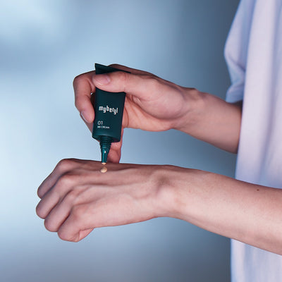 1. スキンケアで顔を整えた後、手の甲に適量を出します。